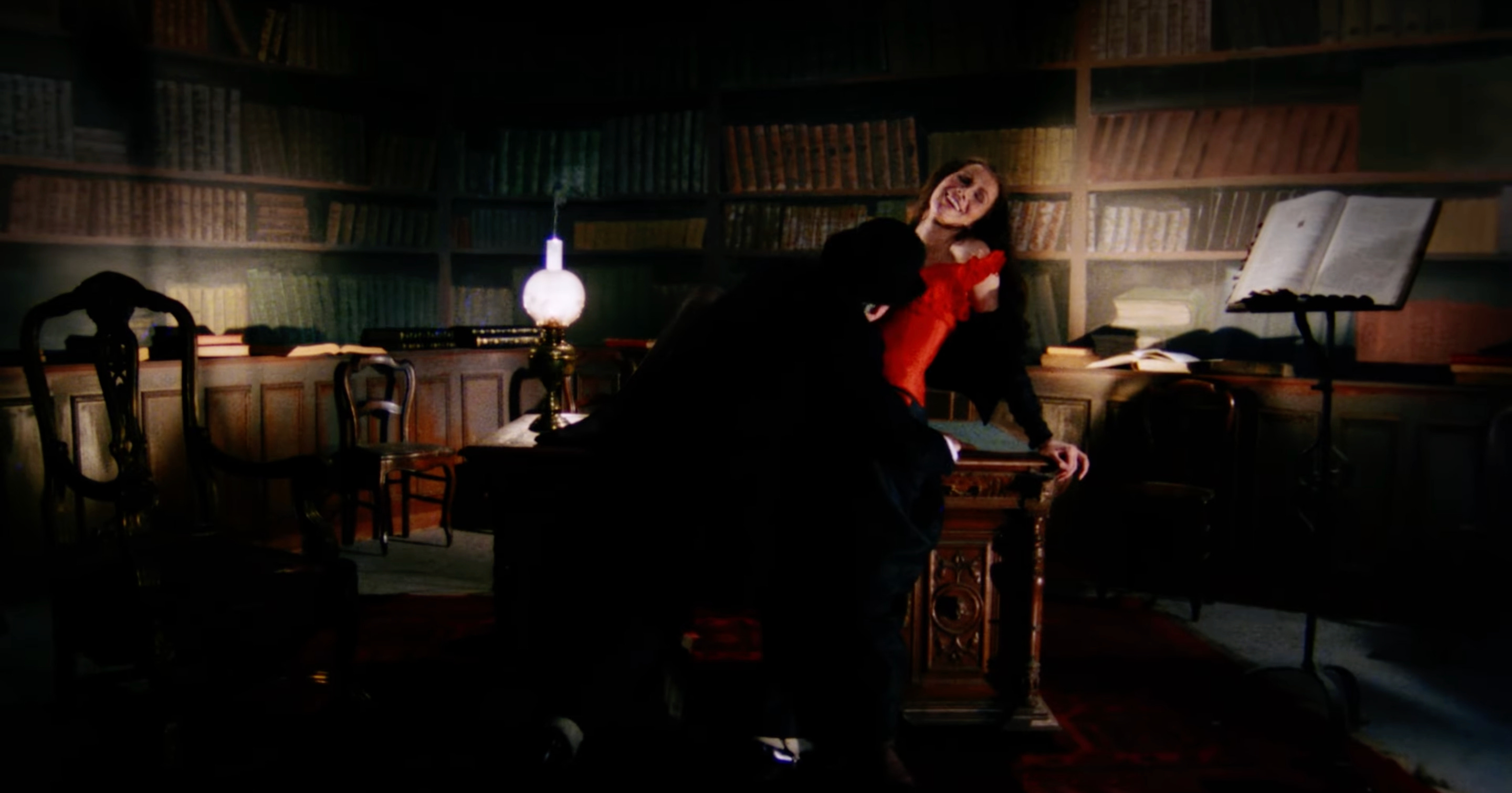 What struck me most is how repetitive the space is: endless corridors, looping staircases, doors that lead to nowhere, servants trekking down hallways that seem to stretch into the dark forever. I wondered how Kümel scouted such a grand location until I sat down to go through the Radiance Films extras. DP Gerry Fisher and art director Philippe Graff had the idea to hand-paint a few floors of that winding staircase on canvas to create the illusion of infinite depth. Similarly, in the sitting room where everyone gathers, Fisher thought of painting the flames on all the lamps scattered throughout. Malpertuis becomes less a house and more a funhouse — both for Jan and us.